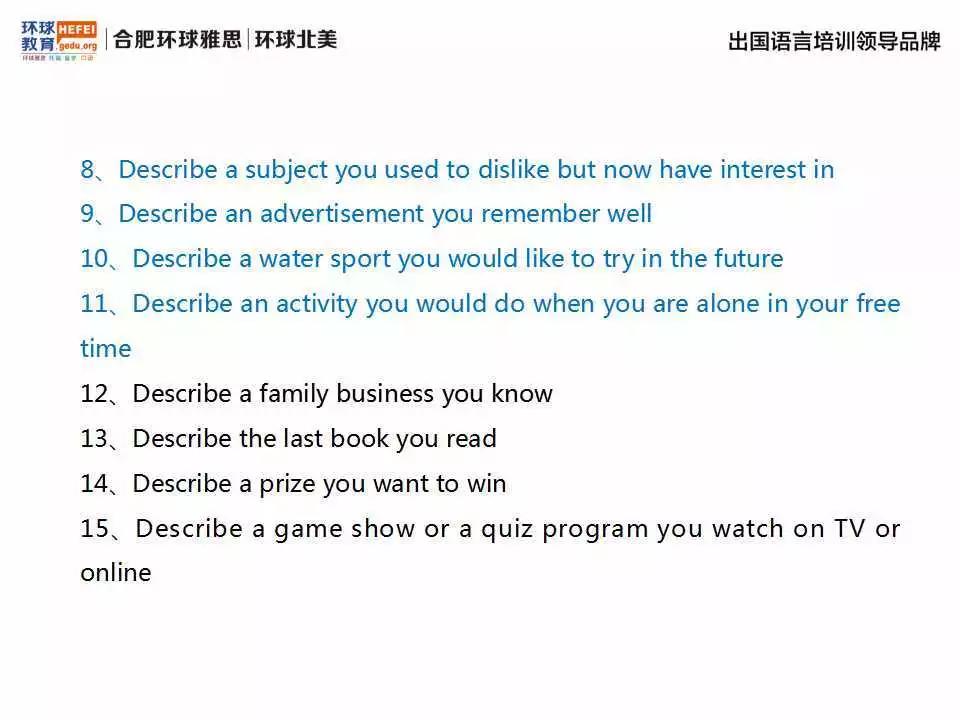 合肥环球教育8月24日口语预测