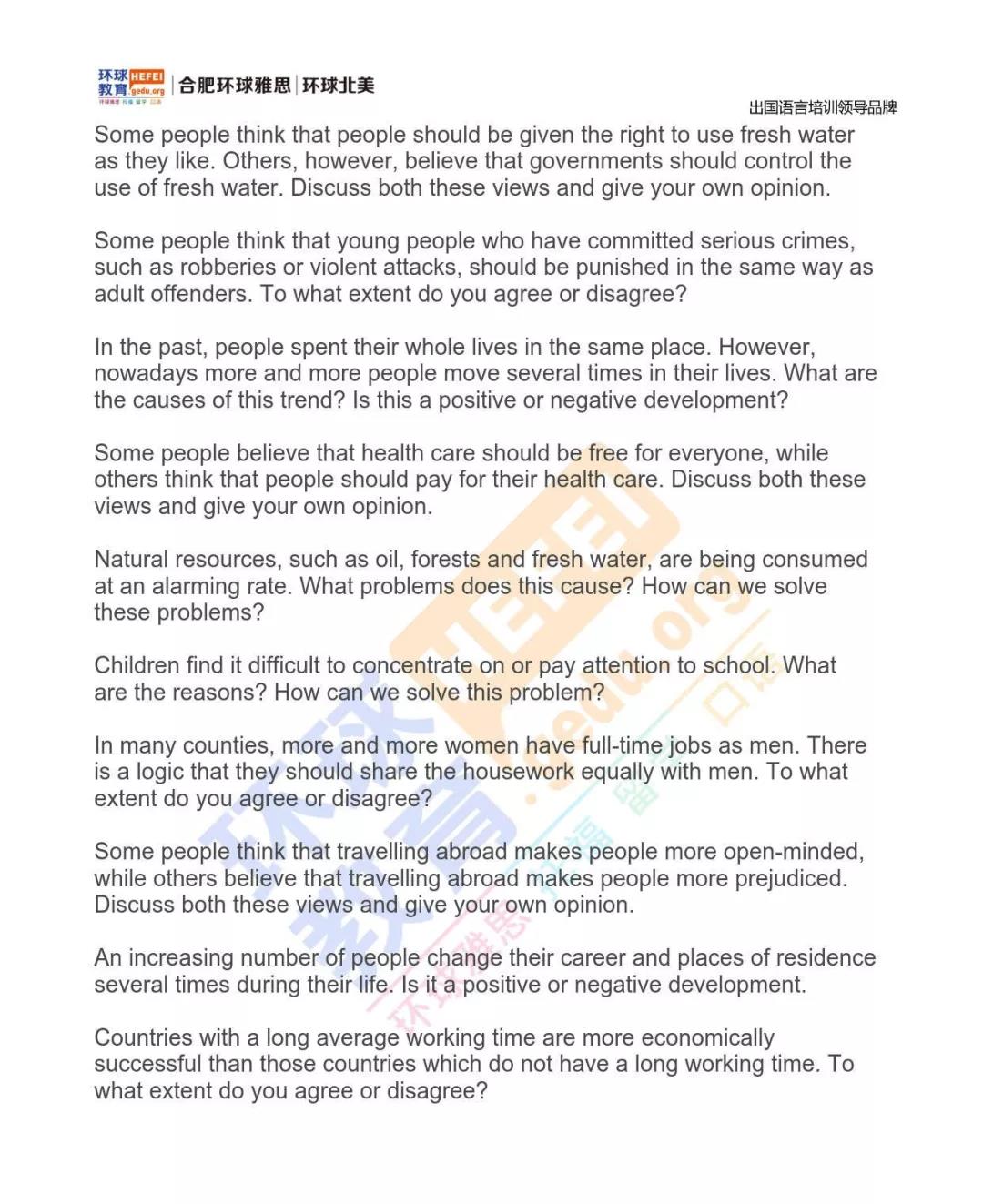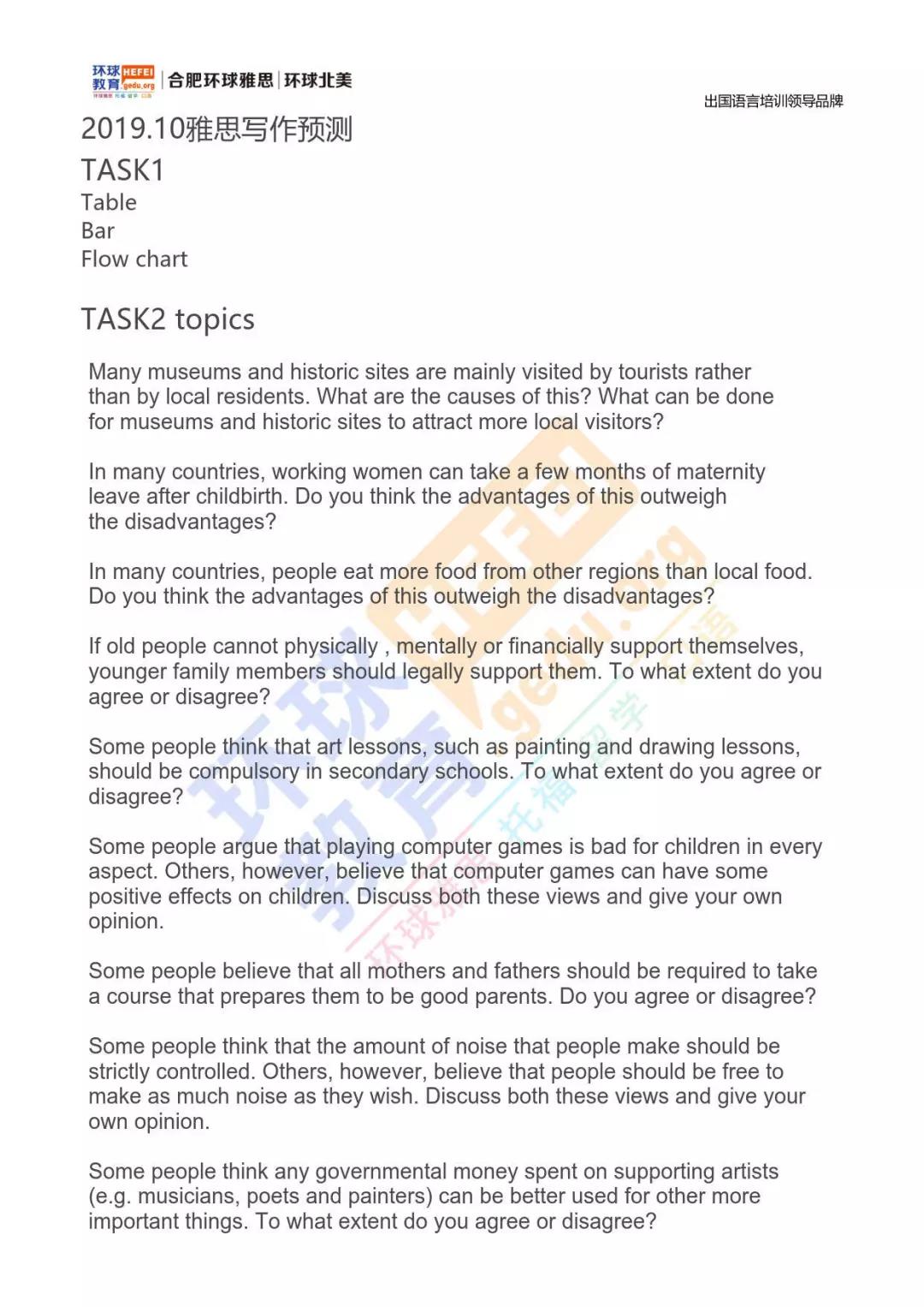 合肥环球教育10月写作预测