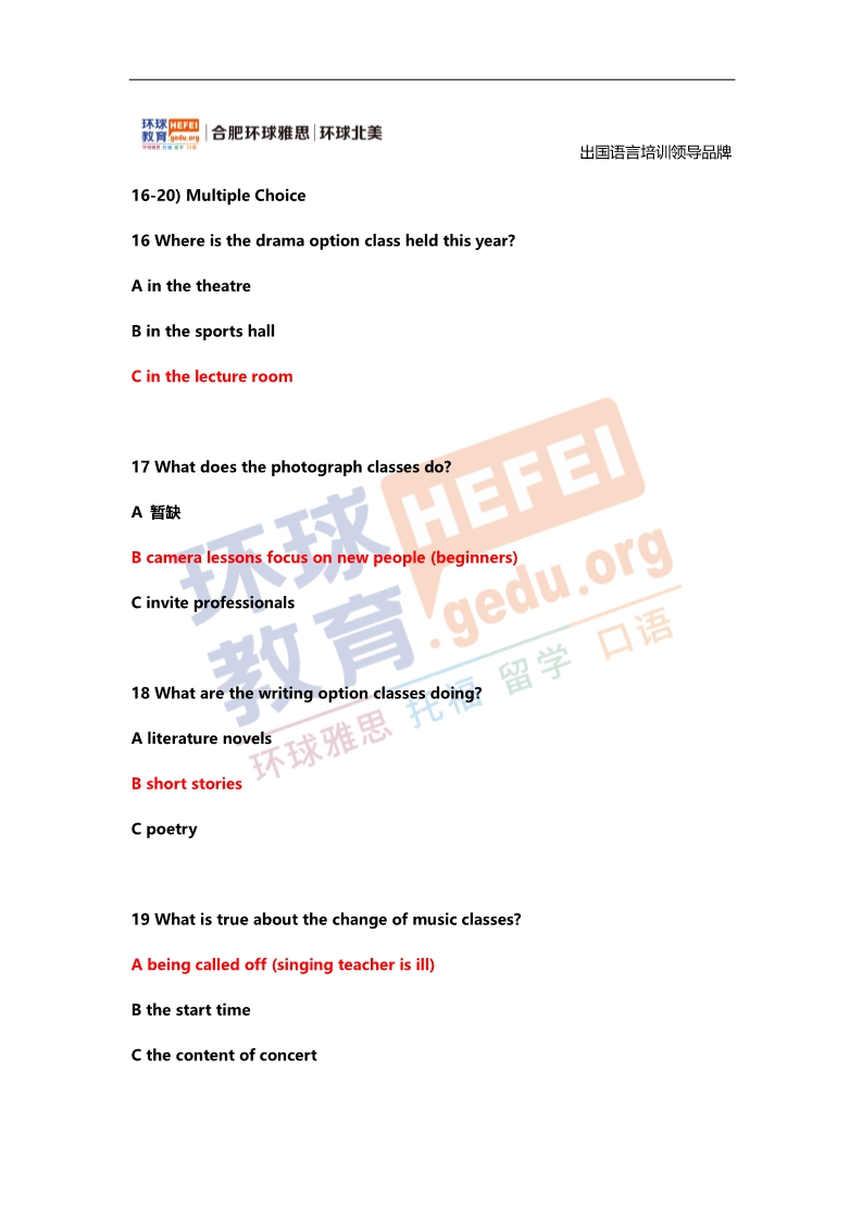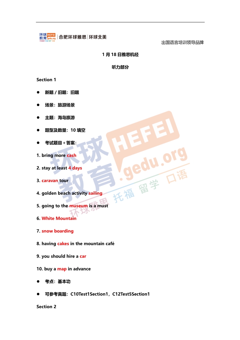 2020年1月16日、18日雅思考试真题回忆+答案