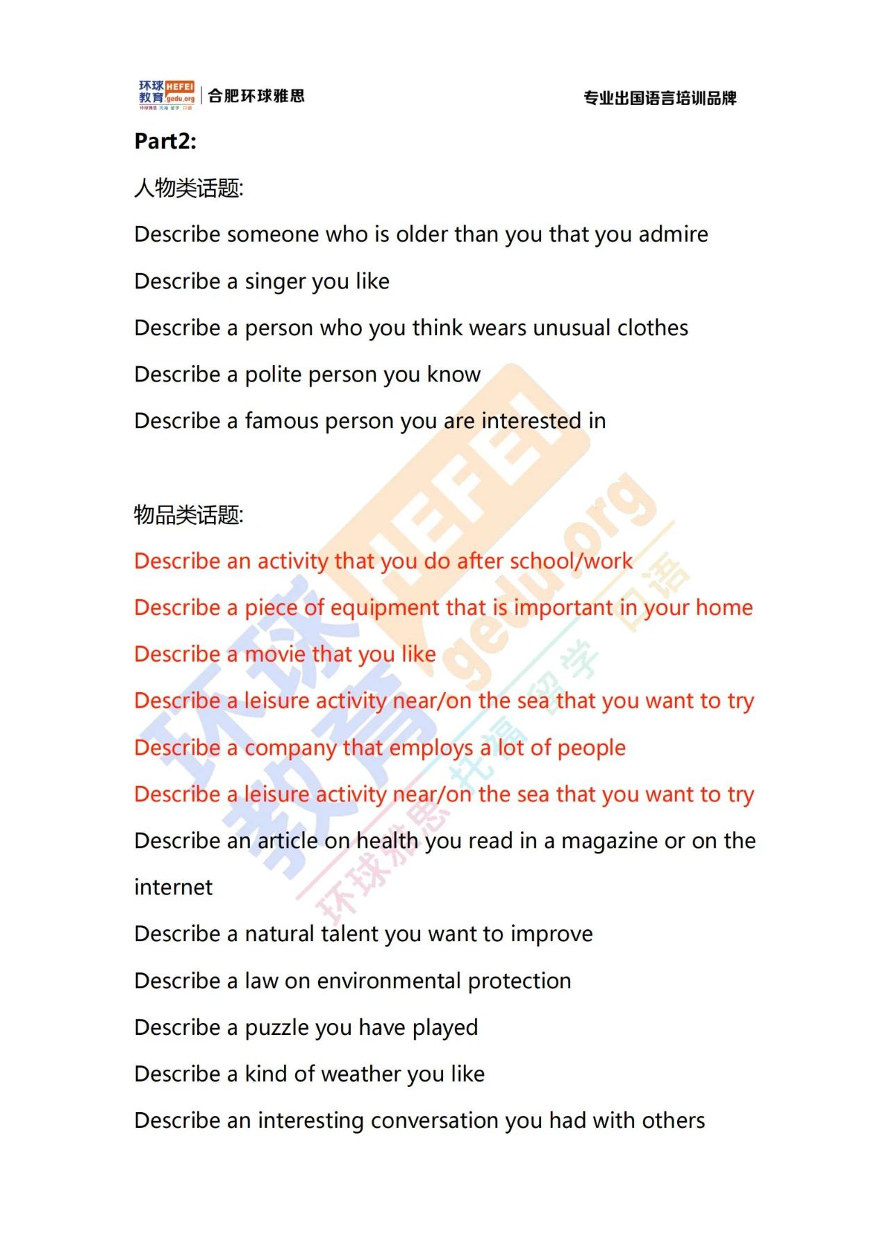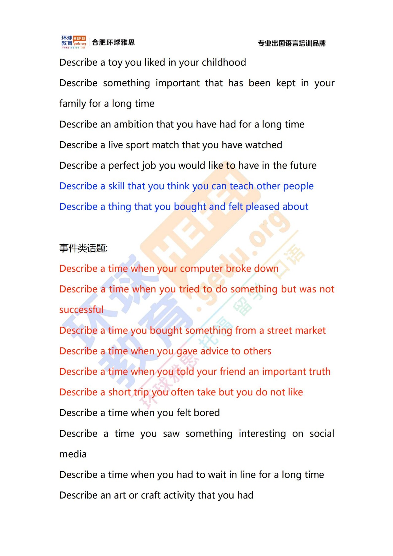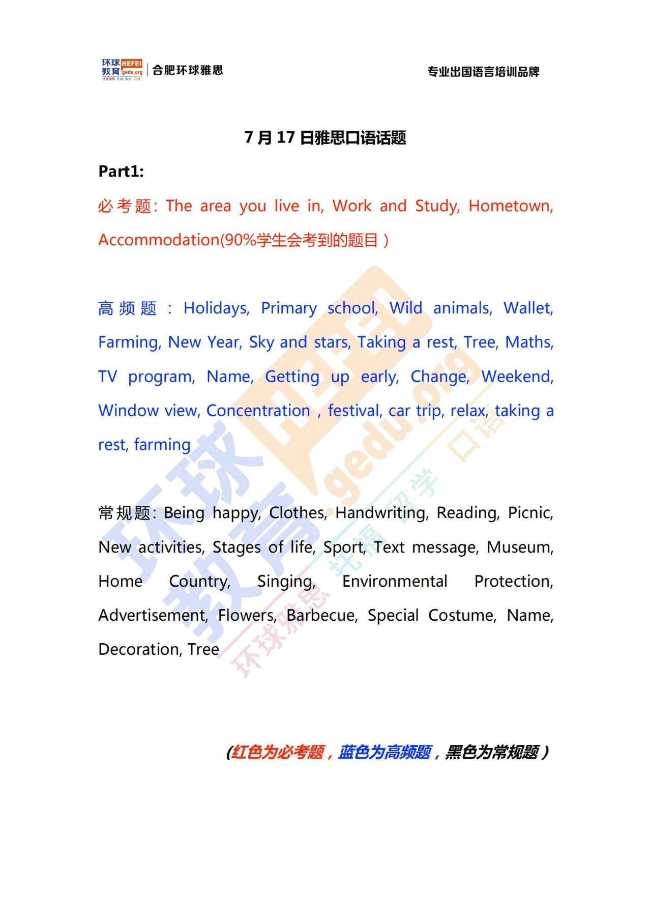 2021年7月17日雅思口语话题