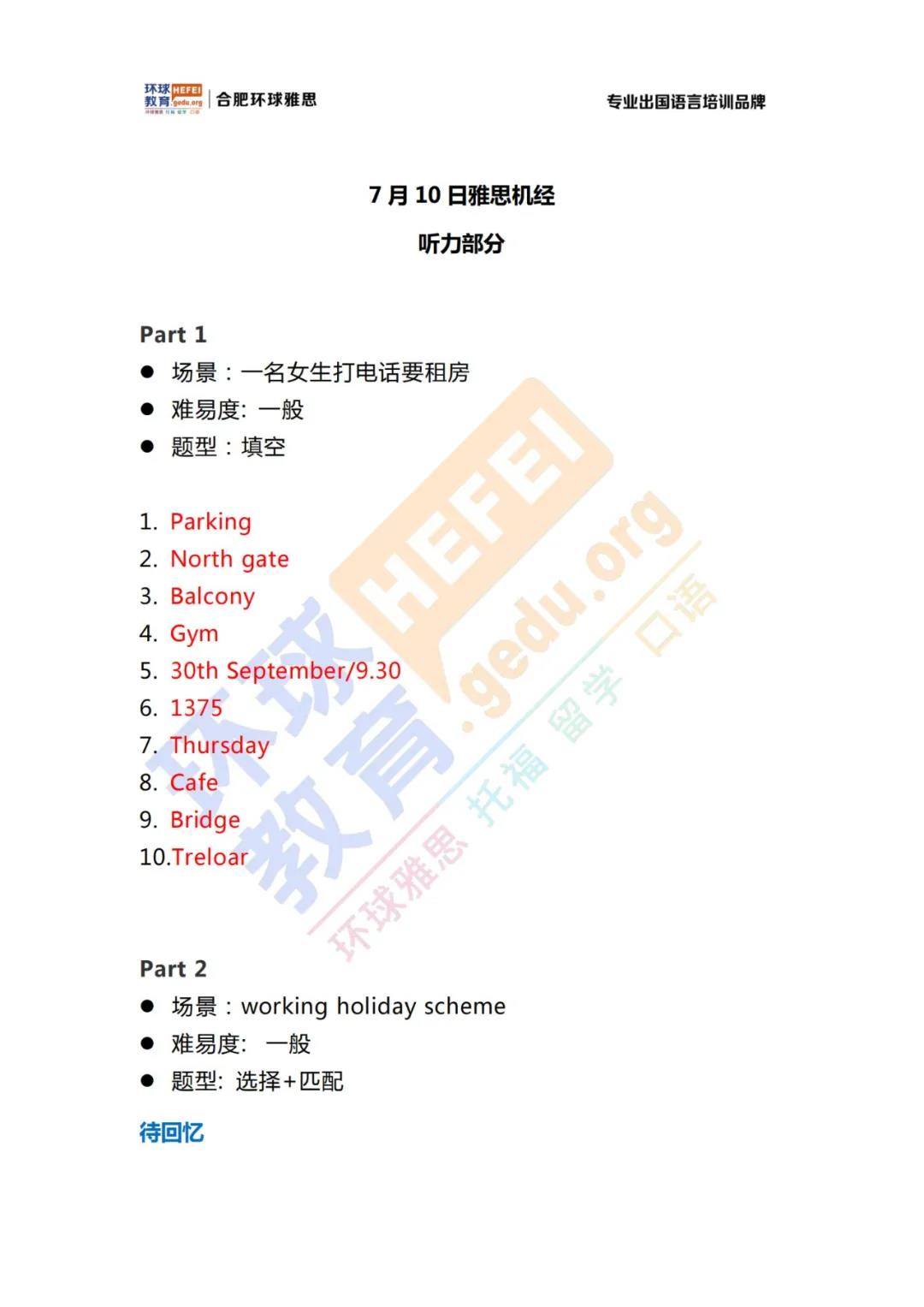 2021年7月10日雅思考试真题答案