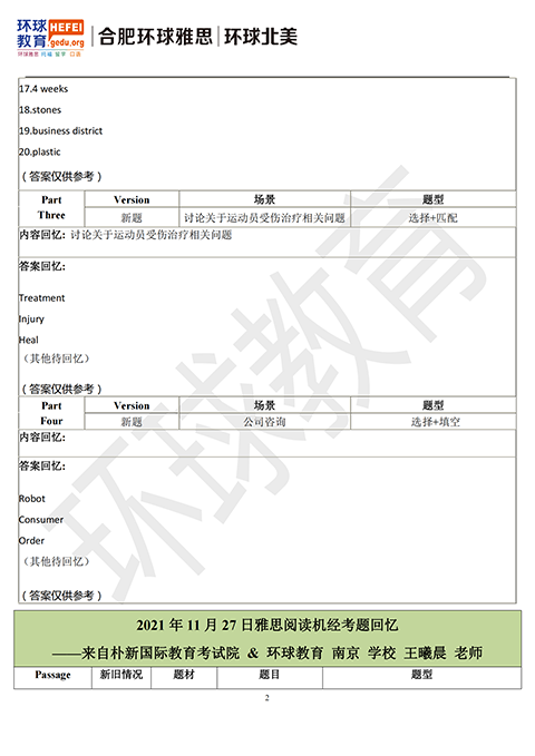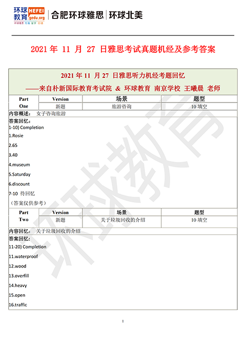 2021年11月27日雅思考试真题回忆+答案