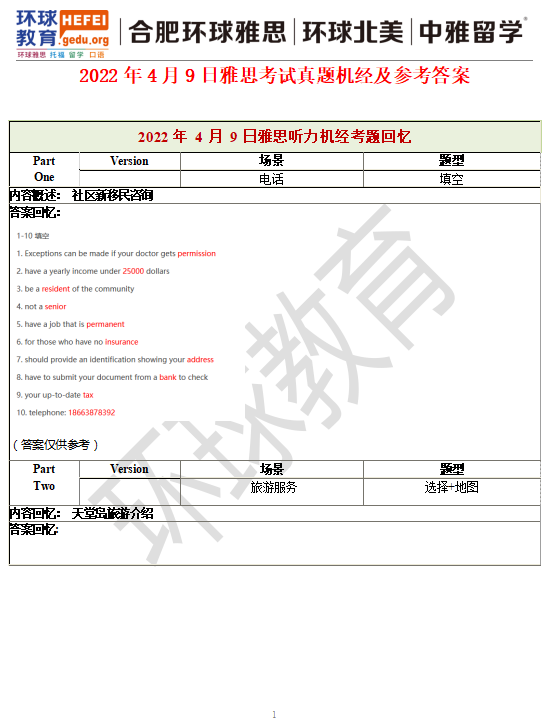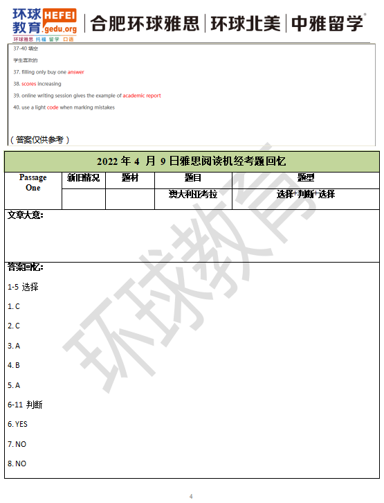 2022年4月9日雅思考试真题回忆+答案