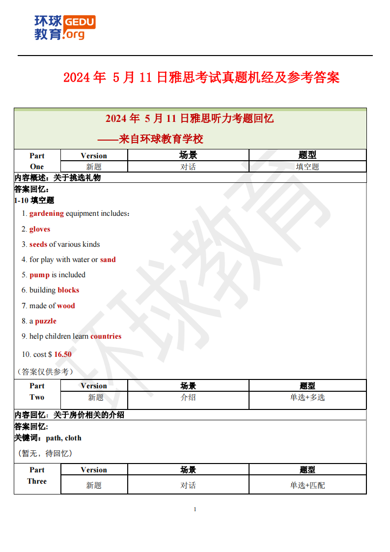 2024年5月11日雅思考试真题回忆+答案
