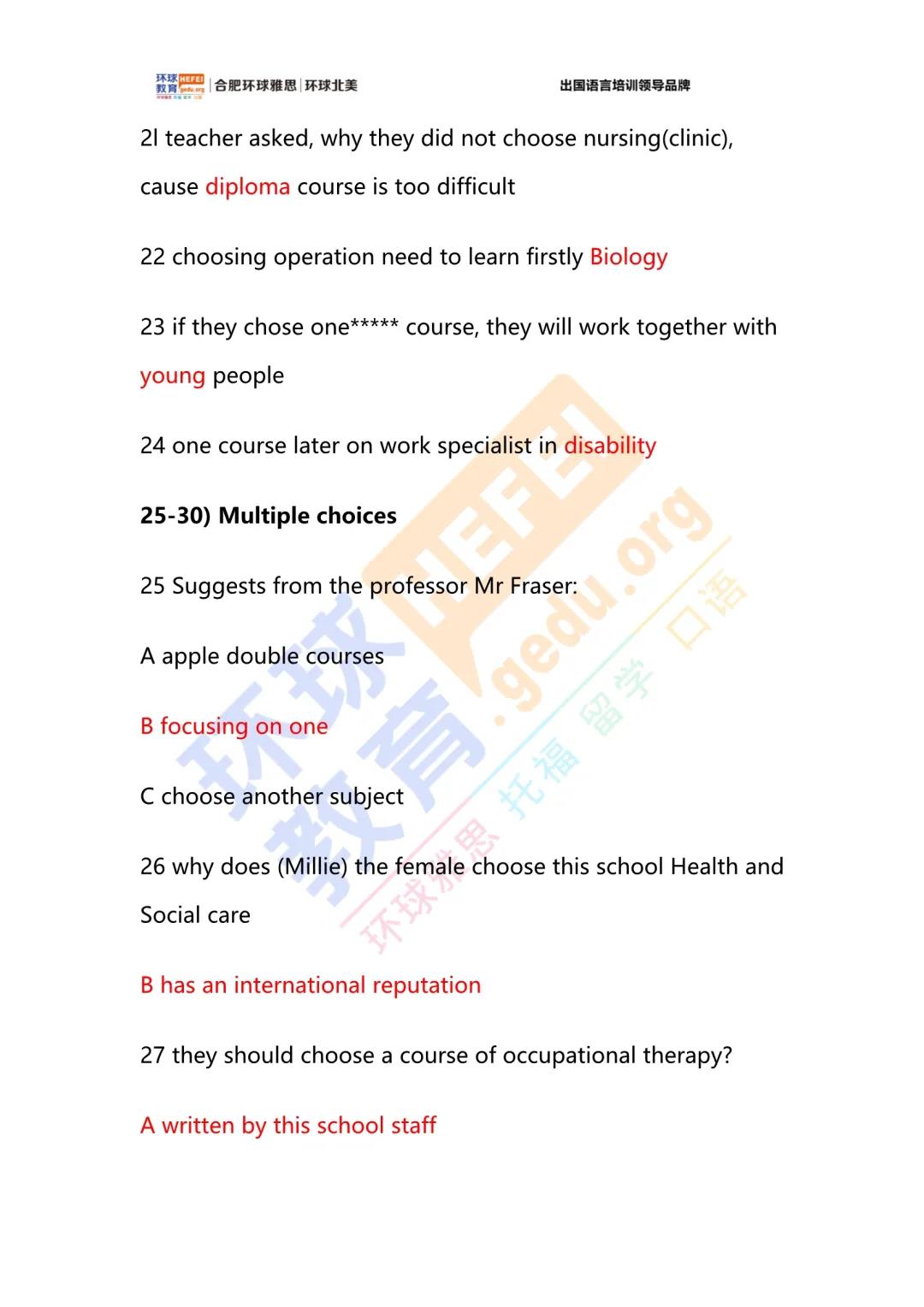 2021年1月23日雅思考试真题回忆+答案