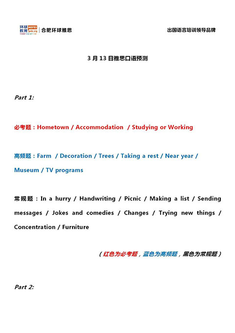 合肥环球教育3月13日口语预测