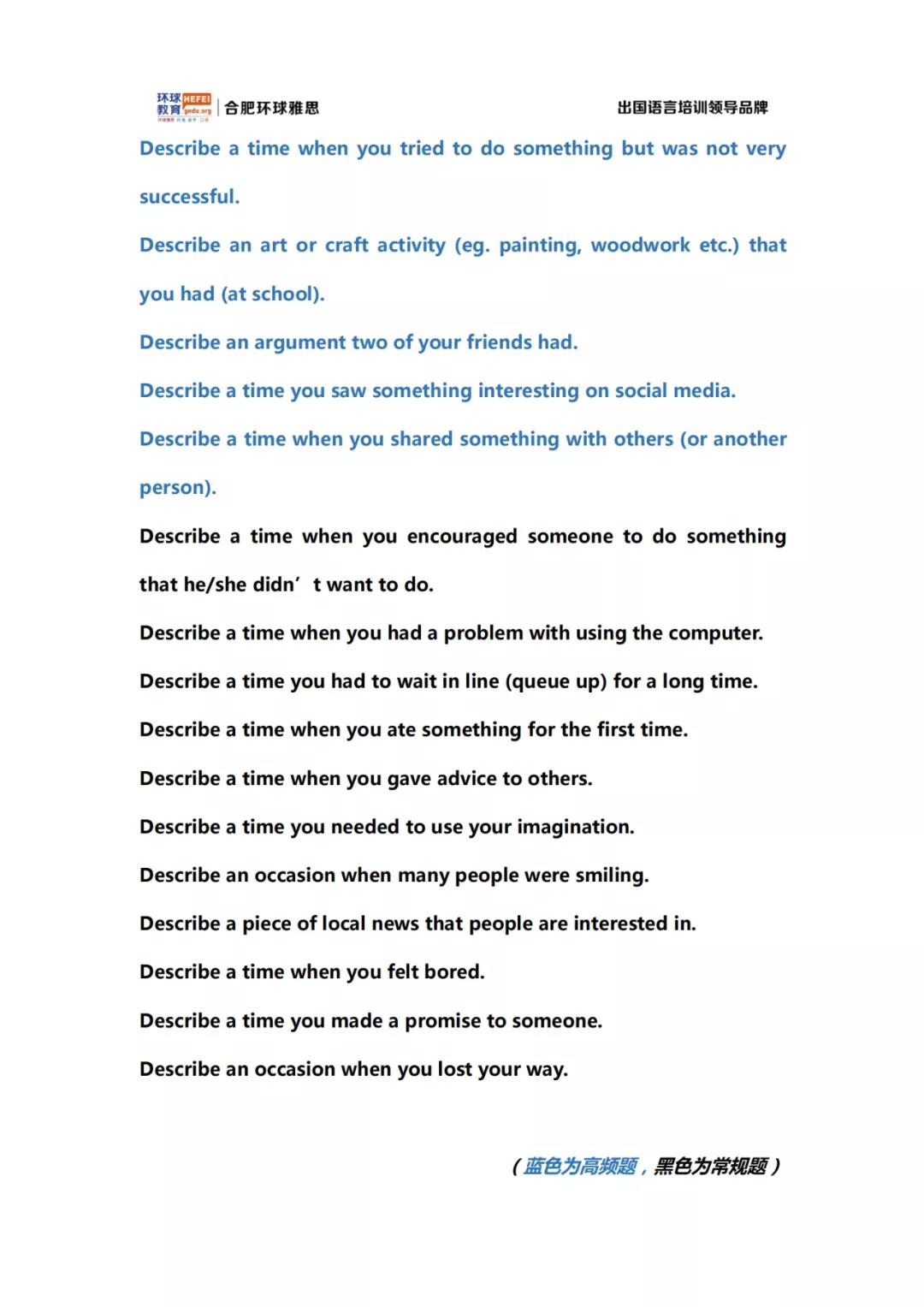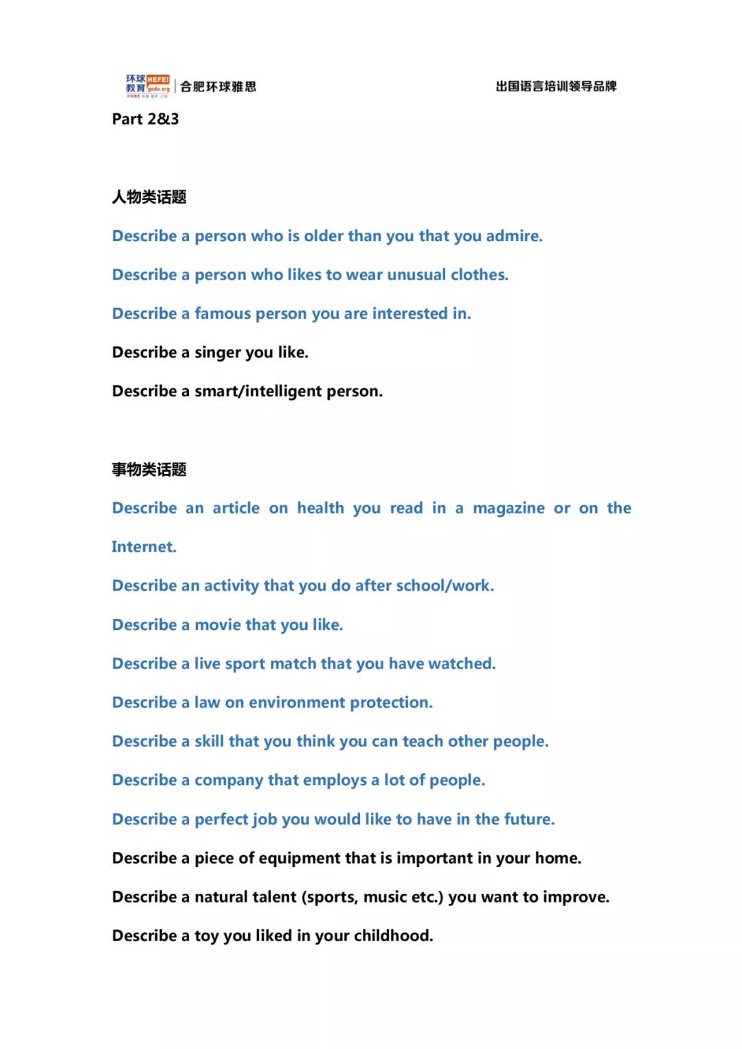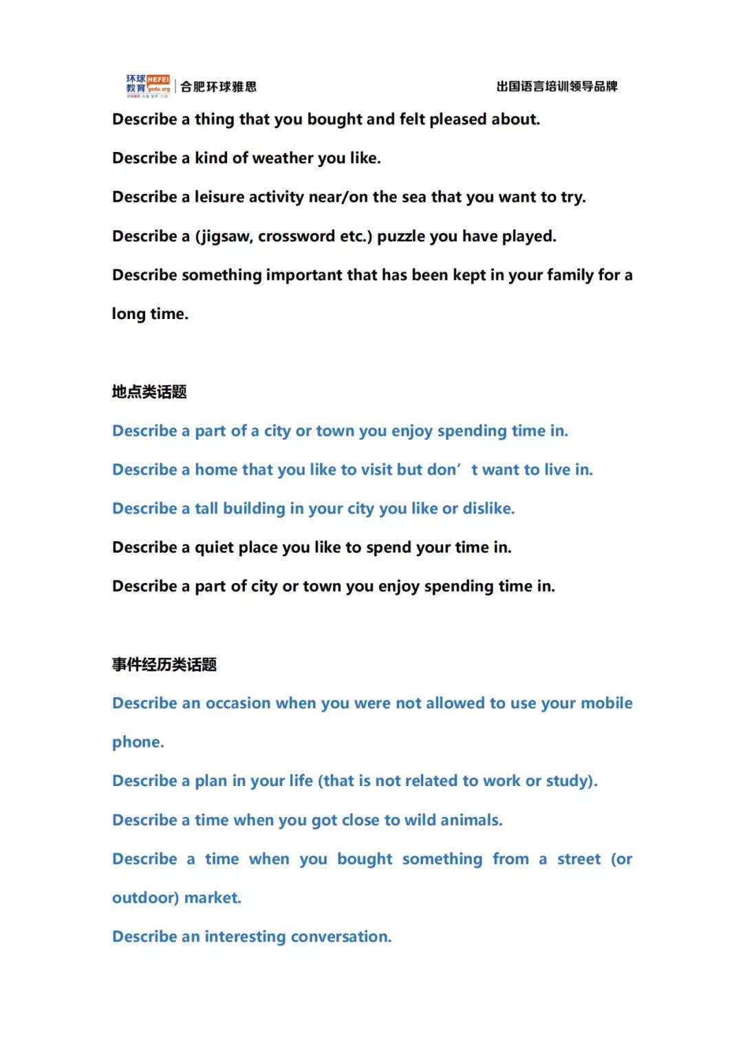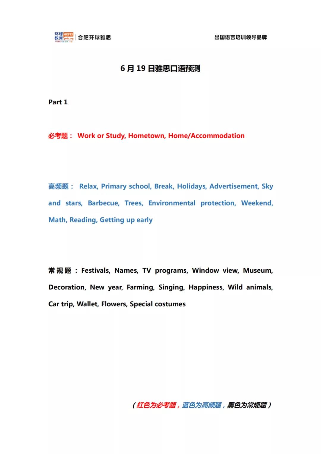 合肥环球教育6月19日口语预测