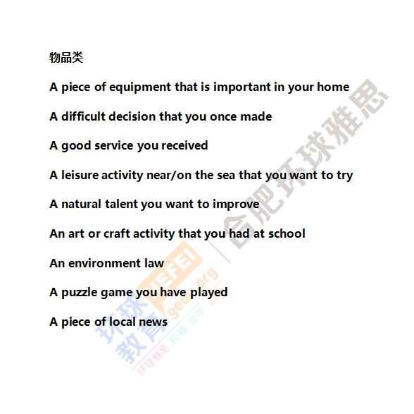 合肥环球教育10月9日雅思口语预测